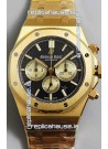 Audemars Piguet Royal Oak Chronograph Yellow Gold Black Dial Steel Strap Swiss Replica Watch