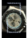 Machinery Layout exactly like Audemars Piguet 3126 Calibre Movement used in Authentic Audemars Piguet Offshore Watches built on Genuine Swiss 7753 Movement architecture with Functional stopwatch feature like the authentic with Seconds hand running at the 12 o clock Sub Dial