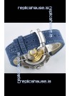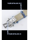 Genuine Fabric/Leather Hybrid Strap in Blue with Double Fold Stainlless Steel Clasps with Patek Philippe Markings/Engravings