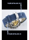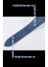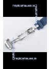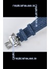 Genuine Fabric/Leather Hybrid Strap in Blue with Double Fold Stainlless Steel Clasps with Patek Philippe Markings/Engravings