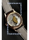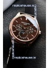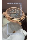 Genuine Swiss 9015 Movement assembled to Resemble the Authentic Patek Philippe PP 324 Calibre Style Movement. Updated Rotor, Bridged and Engravings on Movement with Rose Gold Plated Patek Philippe Stamped Rotor