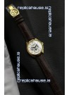 Genuine Leather Strap with Yellow Gold Plated Folding Clasp complete with Patek Philippe Markings.