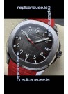 Curved Rubber Strap with Steel Folding Clasp complete with Patek Philippe Markings. A Highly Updated Clasps for this series with much more accurate markings/engravings.