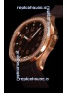18K Rose Gold Plating on 904L Polished Stainless Steel Case with Brushed Bezel exactly as per the original