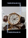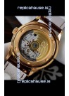 Genuine Swiss 9015 Movement assembled to Resemble the Authentic Patek Philippe PP 324 Calibre Style Movement. Updated Rotor, Bridged and Engravings on Movement with Rose Gold Plated Patek Philippe Stamped Rotor
