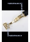 Genuine Leather Strap with IWC Markings and Engravings with Tang 18K Rose Gold Plated Steel Buckle
