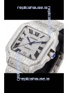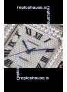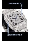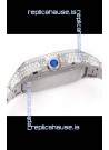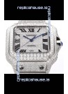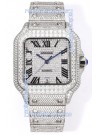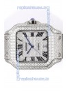 Cartier "Santos De Cartier" Stainless Steel W/ Diamonds Roman Dial 1:1 Mirror Replica - 40MM - Genuine Diamonds