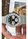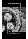 Frosted White Gold Plating on 904L Stainless Steel Strap completed with AP Markings and Engravings as per the originals and AP Folding Clasp