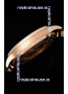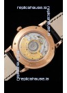 18K Rose Gold Plating on 904 Polished Solid Stainless Steel Case with Open Case Back Cover in Steel. Polished Bezel.