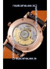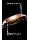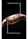 18K Rose Gold Plating on 904 Polished Solid Stainless Steel Case with Open Case Back Cover in Steel. Polished Bezel.