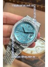 Ice Blue Honeycomb dial with Date Indicator. Diamonds Bezel