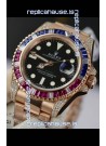 Rolex GMT Masters II Diamonds Swiss watch with Rose Gold 904L Case - 1:1 Mirror Quality