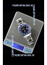 904L Stainless Steel Case as per the Orginal with Metallic Blue Ceramic Inserts.