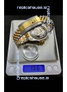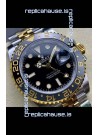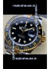 Two Tone Yellow Gold Plating 904L Stainless Steel Case as per the Orginal with Metallic Black/Blue Ceramic Inserts.