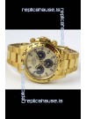 Yellow Gold Plating on 904 Solid Stainless Case with Rolex Markings and Engravings like the Authentic.