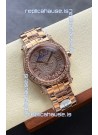 Mossanites Paved Dial with Rose Gold Roman Hour Numerals and Date Window at 4 O'Clock, Signature Floating Diamonds on Dial