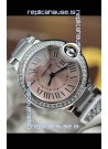 Steel Pink Dial with Roman Hour Markers. Diamonds Bezel