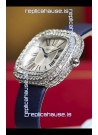 White Steel Dial with Roman Hour Numerals. Swiss Cut Diamonds Bezel
