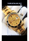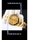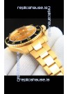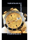 Rolex Submariner Japanese Replica Watch in Yellow Gold Casing Black Bezel