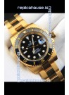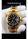 Rolex Submariner Japanese Replica Watch in Yellow Gold Casing Black Dial