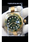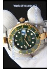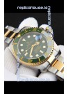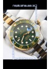 Rolex Submariner Japanese Replica Watch in 2 Tone Yellow Gold Casing Green Dial