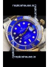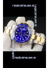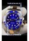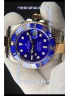 Rolex Submariner Japanese Replica Watch 904L 2 Tone Yellow Gold - Ceramic Bezel in Blue