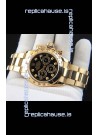 Rolex Daytona Japanese Movement Gold Casing Replica Watch in Black Dial