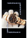 Rolex Daytona Japanese Movement Gold Casing Replica Watch in Black Dial