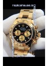 Rolex Daytona Japanese Movement Gold Casing Replica Watch in Black Dial