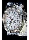 Function: Hour, Minute, Second, Date Display at 4:30 O'Clock, Three White Subdials, Steel Numeral Markers and Full Functional Chronograph at 28800 vph