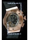Function: Hour, Minute, Second, Date Display at 4:30 O'Clock, Three White Subdials, Rose Gold Stick/Numeral Markers and Full Functional Chronograph at 28800 vph