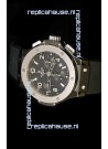 Function: Hour, Minute, Second, Date Display at 4:30 O'Clock, Three White Subdials, Black Stick/Numeral Markers and Full Functional Chronograph at 28800 vph