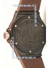 Strap: Genuine Brown Rubber Strap with Hublot Markings and Engravings exactly like the Authentics