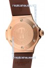 Strap: Genuine Brown Rubber Strap with Hublot Markings and Engravings exactly like the Authentics