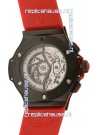 Strap: Genuine Red Rubber Strap with Hublot Markings and Engravings exactly like the Authentics