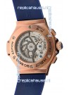 Strap: Genuine Blue Rubber Strap with Hublot Markings and Engravings exactly like the Authentics
