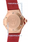 Strap: Genuine Red Rubber Strap with Hublot Markings and Engravings exactly like the Authentics