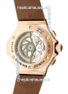 Strap: Genuine Brown Rubber Strap with Hublot Markings and Engravings exactly like the Authentics