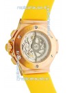 Watch name: Hublot Big Bang Swis Watch Yellow Strap Black Dial Pink Gold Case