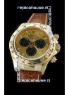 Watch name: Rolex Daytona Cosmograph Swiss Replica Gold Watch in Brown Strap