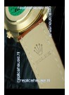 Strap: Genuine Brown Leather Strap with Rolex Folding Clasp