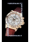 Watch name: Rolex Daytona Cosmograph Swiss Replica Gold Watch in Brown Leather Strap