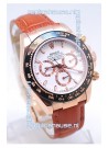 Watch name: Rolex Daytona MonoBloc Cerachrom Bezel Swiss Replica Rose Gold Plated Watch in Brown Strap