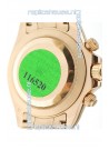 Other Feartures: 18K Gold Plating Tachymeter Bezel, Green Hologram Sticker behind the Watch, Laser Etched Rolex Crown at 6 O'Clock, Serial Number Engraved Between Lugs, One Piece Screw down crown with Rolex Logo Engraved on the Tip of the Crown and Genuine Sapphire Crystal Glass exactly like the Authentics