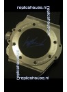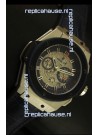 Hybrid Leather/Rubber Strap with Steel Deployant Clasp complete with Hublot Markings and Engravings.