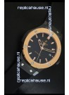 PVD Coated Case with Hublot Markings and Engraving. Rose Gold Plated Bezel