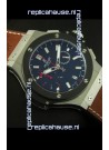 Hybrid Leather/Rubber Strap with PVD Coated Deployant Clasp complete with Hublot Markings and Engravings.