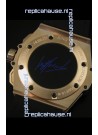 Hybrid Leather/Rubber Strap with Rose Gold Deployant Clasp complete with Hublot Markings and Engravings.