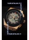 Rose Gold Plated Casing on 440 Solid Stainless Steel with Solid Case back with Black PVD Coated Bezel