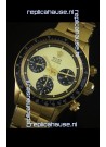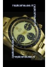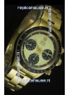 18K Champange Gold Plated Case on 440 Solid Stainless Case with Rolex Markings and Engravings like the Authentic with Fixed Black Tachymeter Bezel